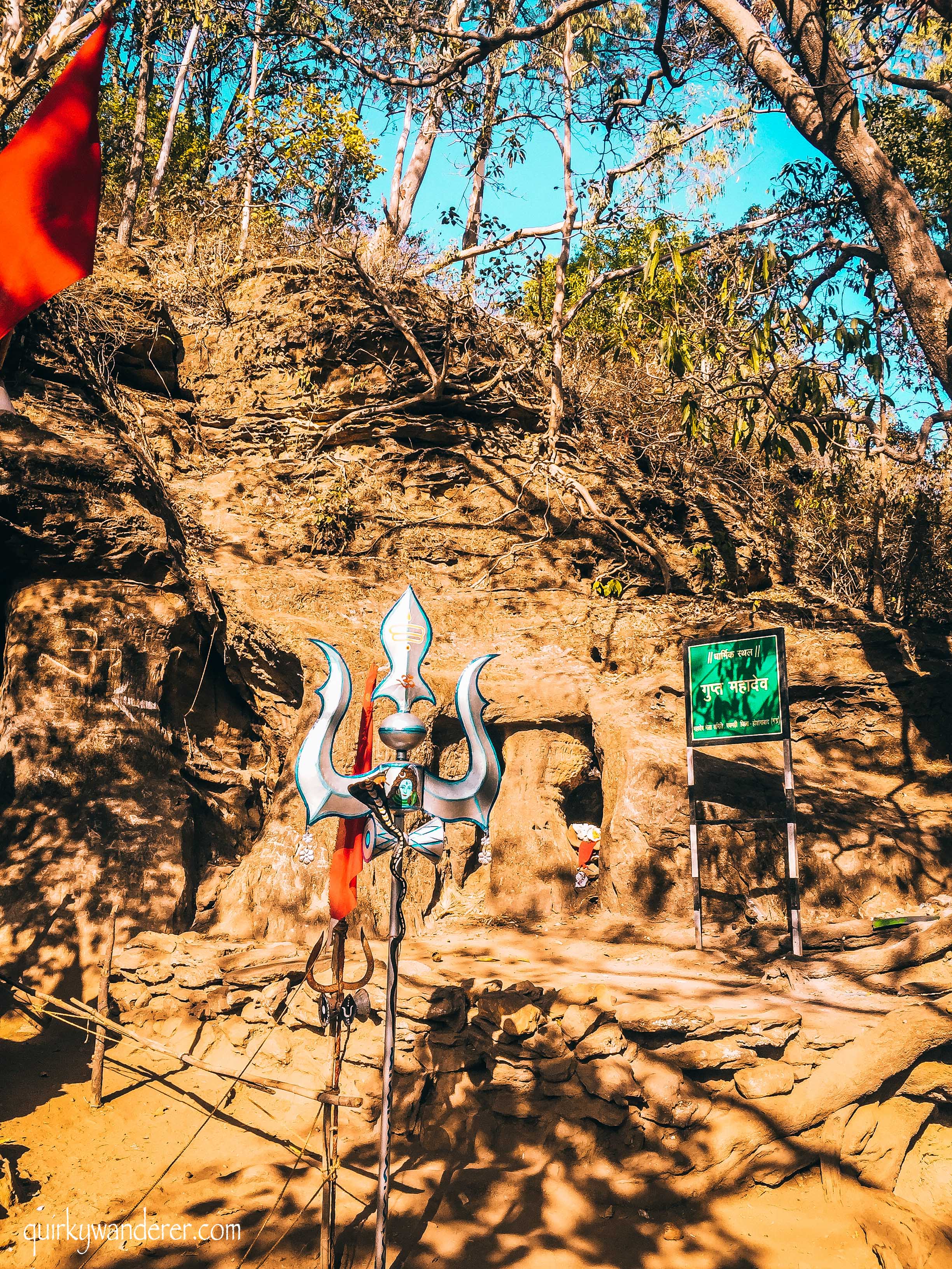 At a walking distance from Bada Mahadev is the Gupt Mahadev temple. If it weren’t for the sign and the saffron flags, you’d probably miss the opening of the cave. The cave is so narrow, that I wondered how I’d ever enter it. The priest instructed that only two people can slide in and walk sideways to see the shrine inside.
