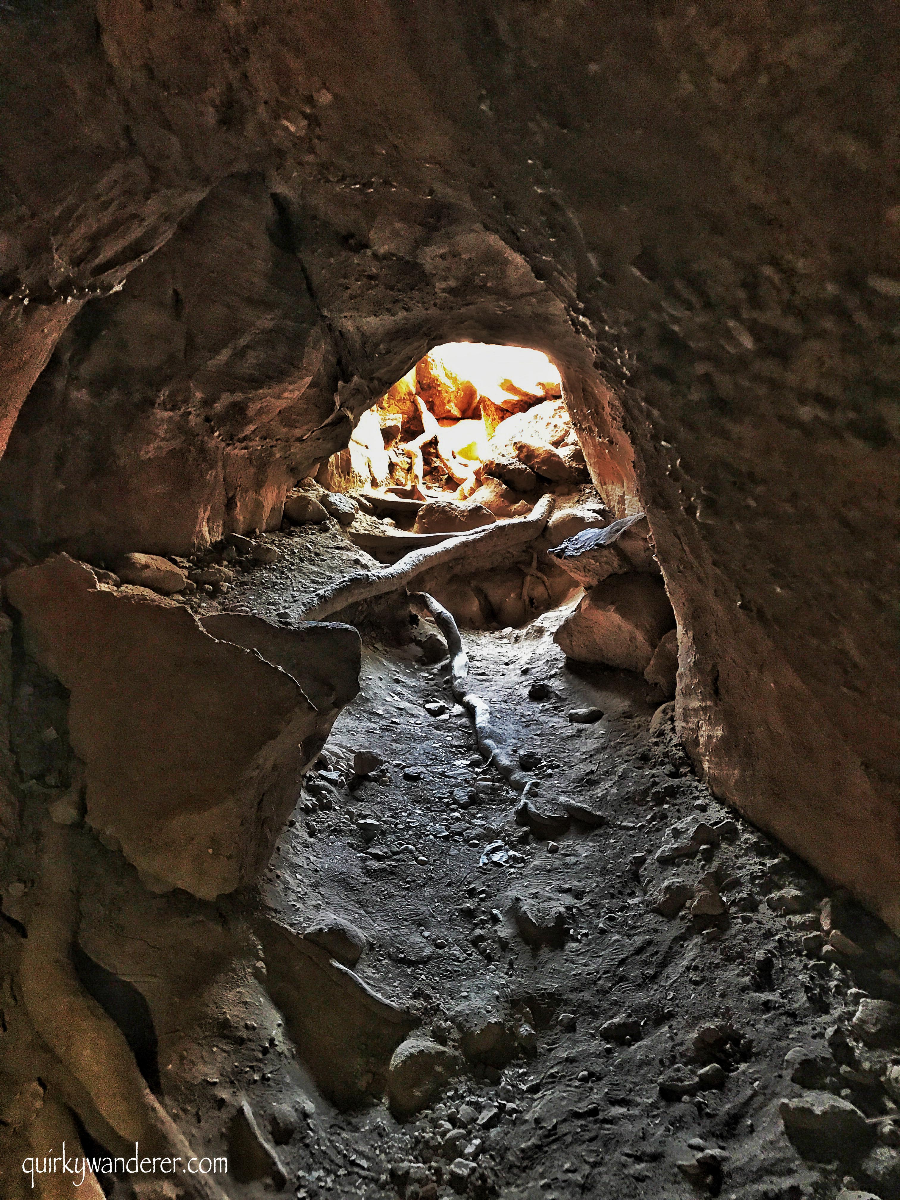 Suddenly feeling like an explorer, I crawled inside the catacomb corridors only to find bats inside!