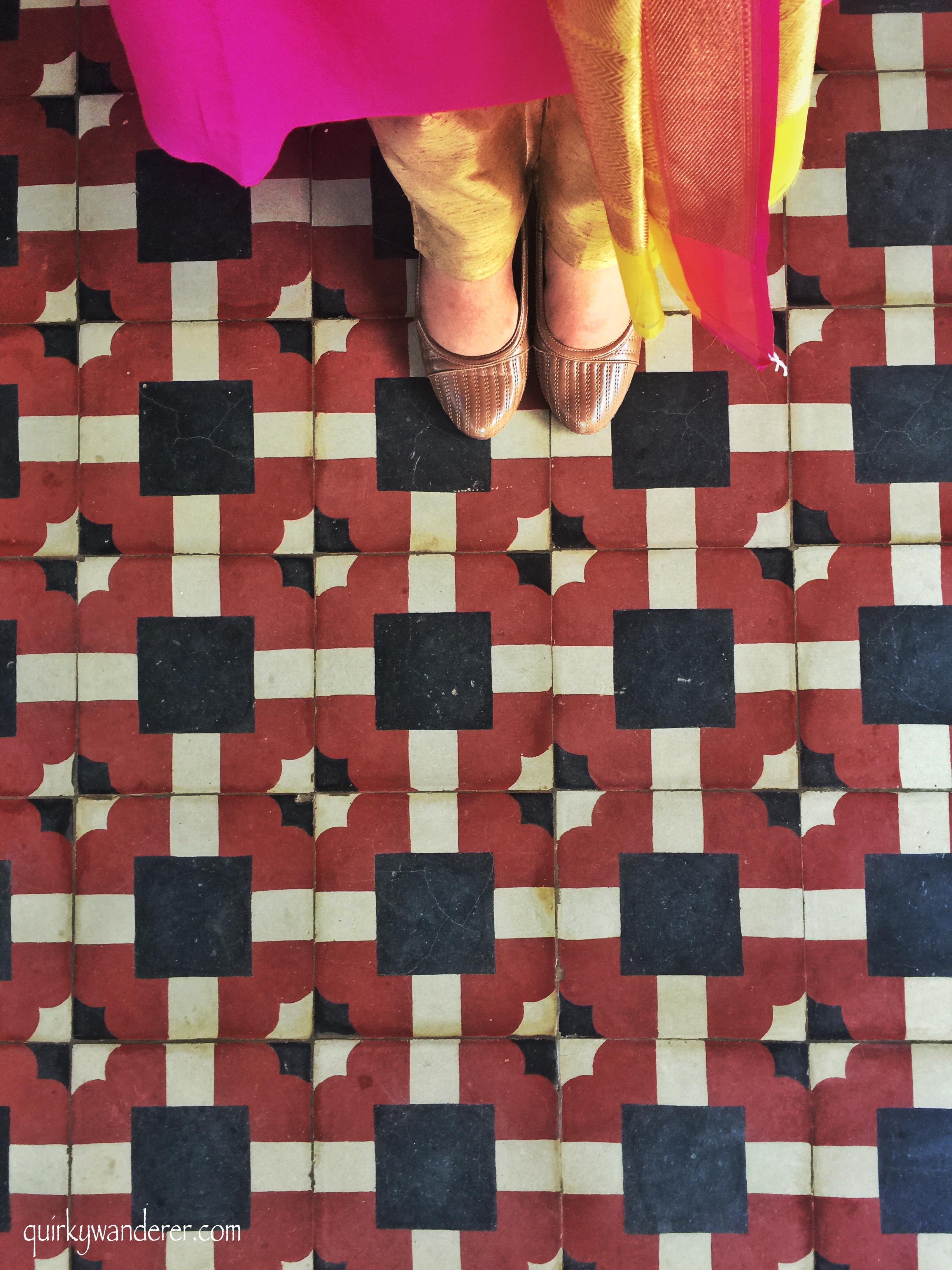 The mansions I visited had such a plethora of Athangudi tiles that I couldn’t resist a From where I stand picture! These tiles actually require very little maintenance and last a lifetime!