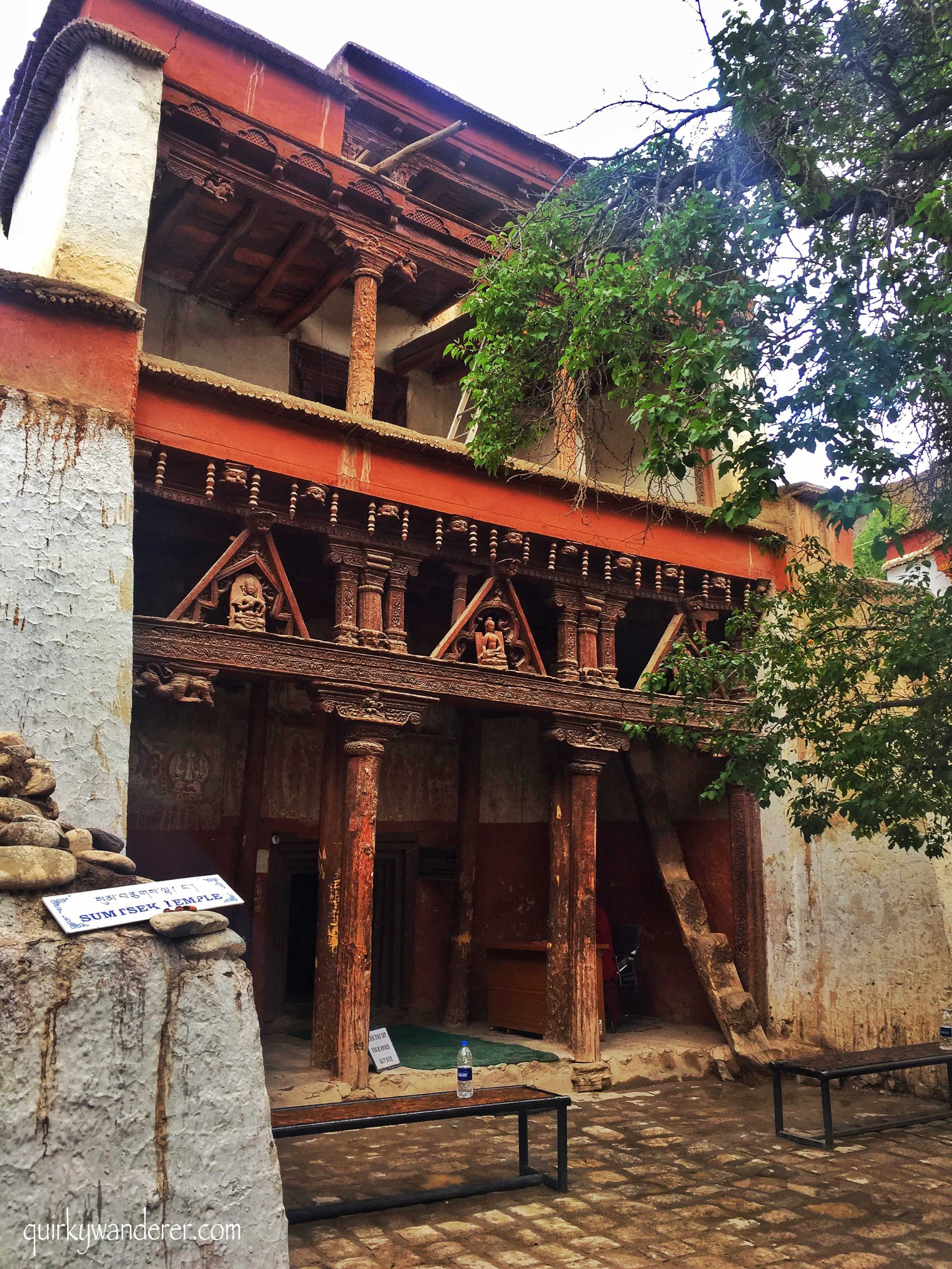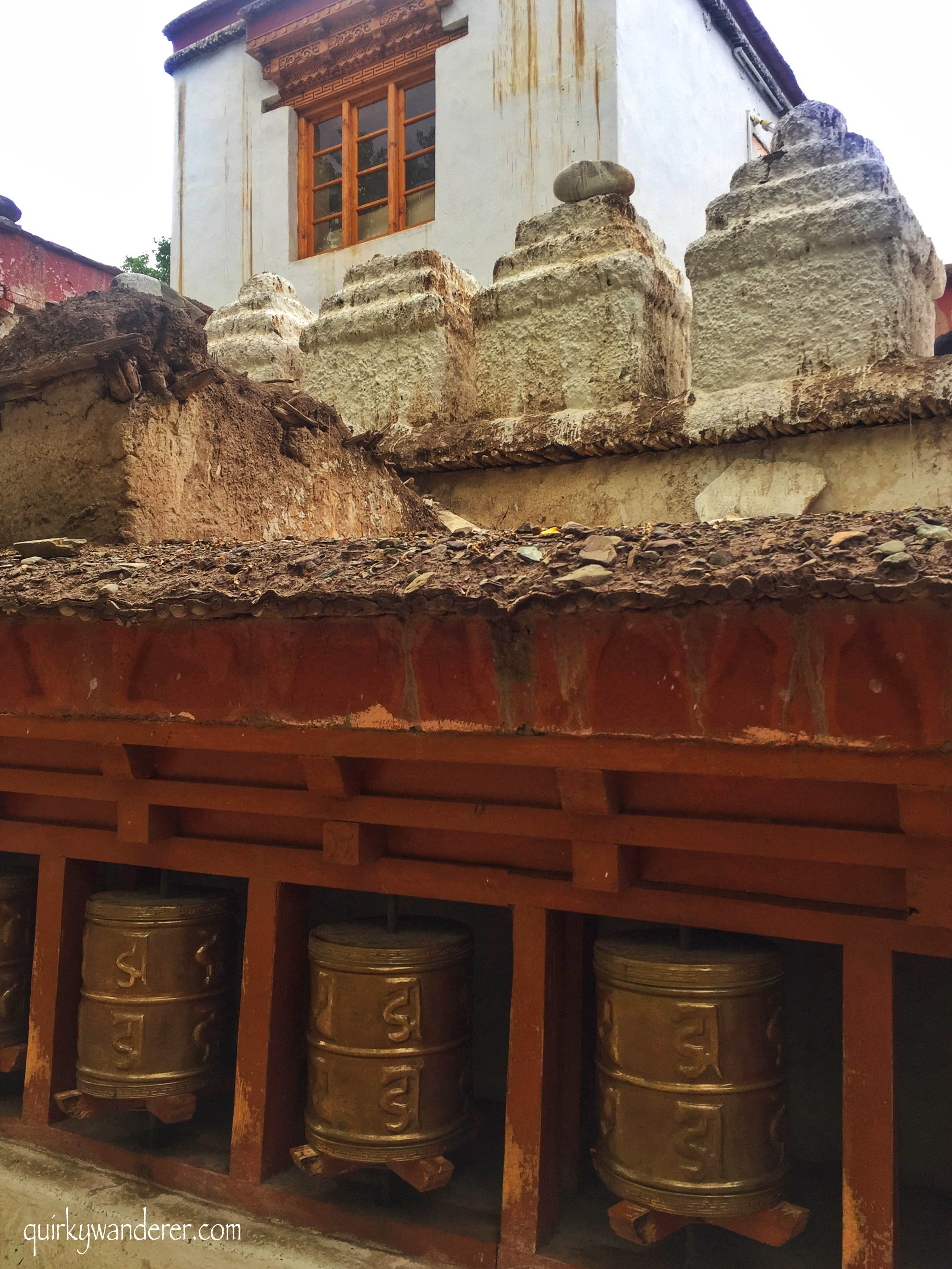 Murals and wall paintings welcome you. These intricate paintings are the oldest in Ladakh and cover every square inch of the wall from the floor to the ceiling. The wooden carvings and details outside are built in Kashmiri style, providing an interesting glimpse into the Ladakhi culture of yesteryears, where rulers invited special artists to paint these striking murals and how!