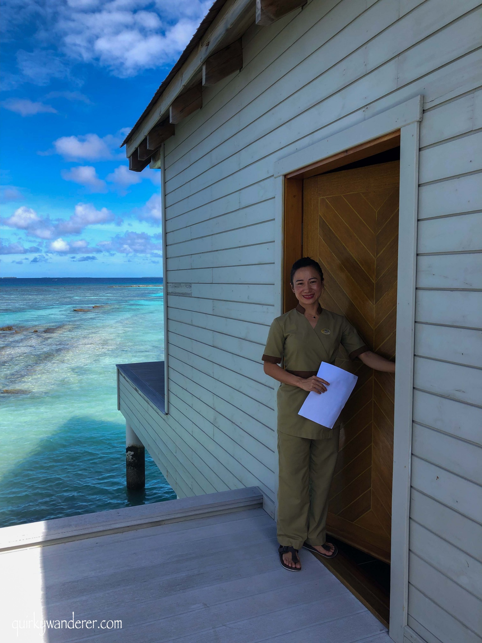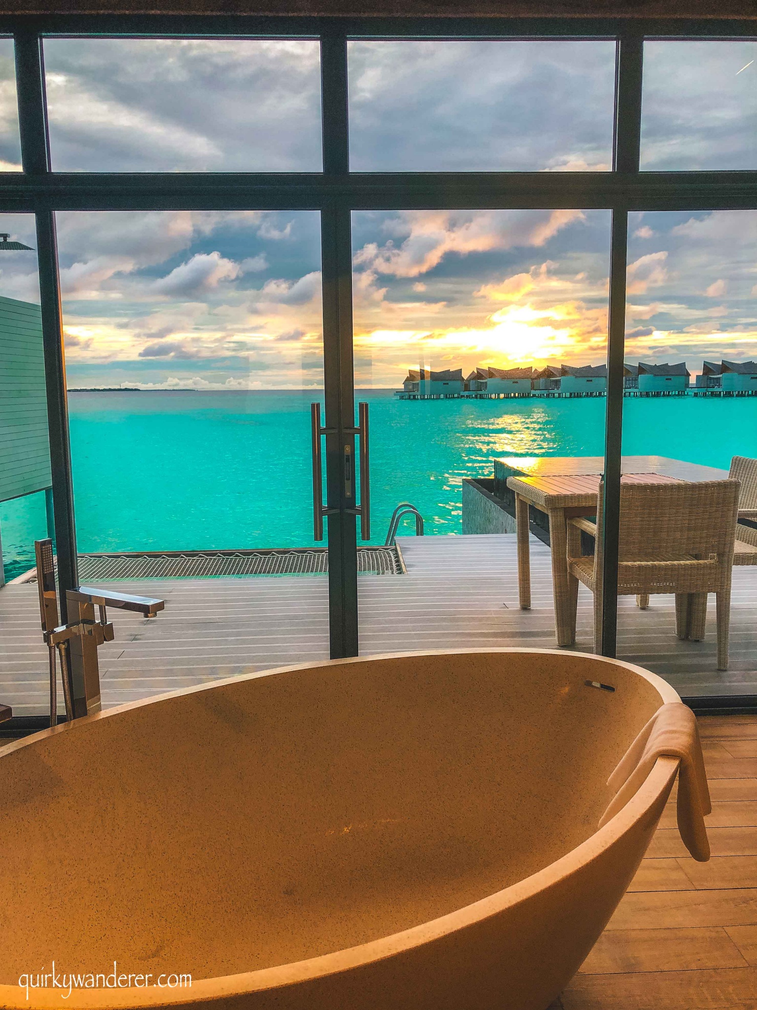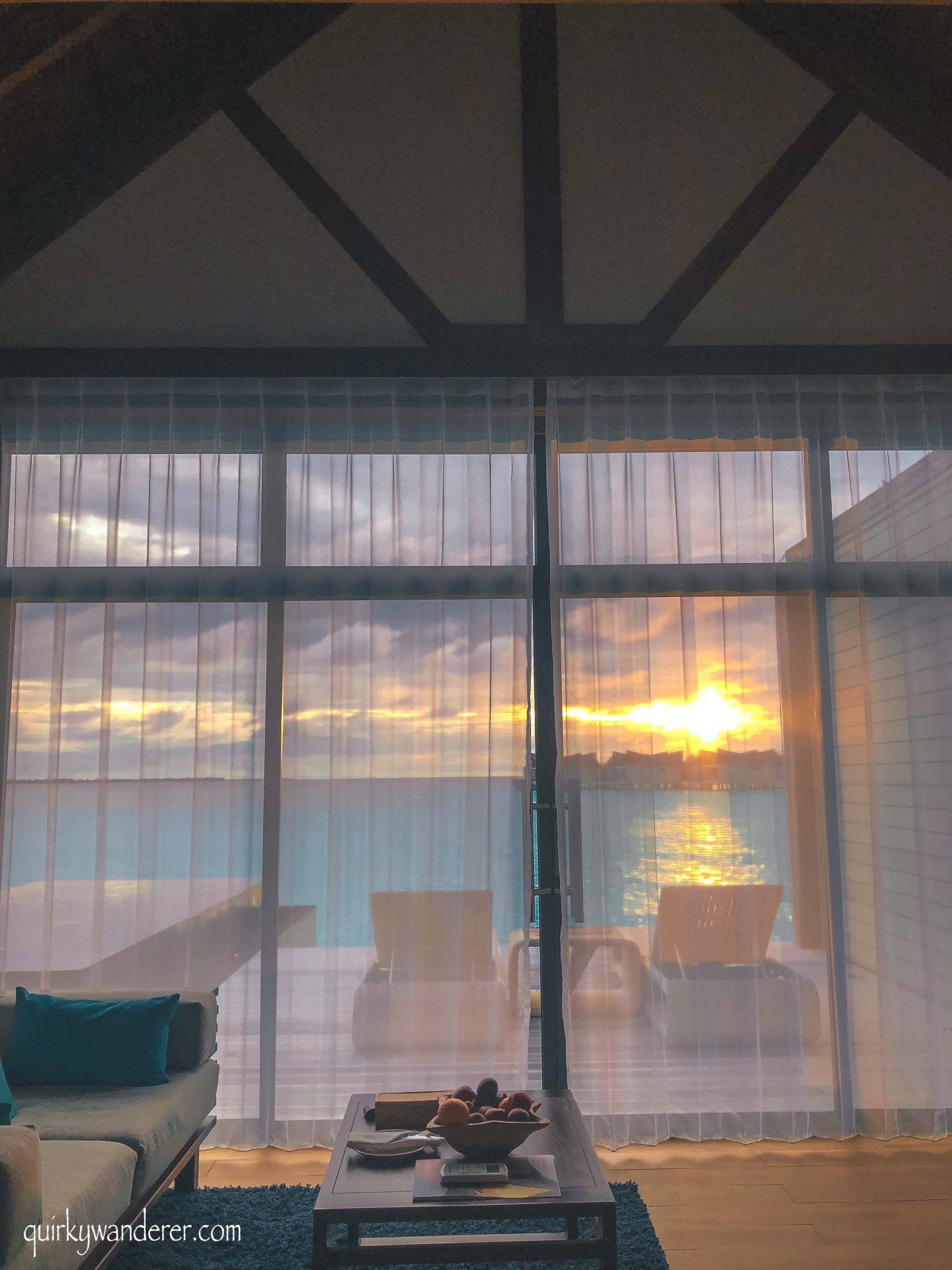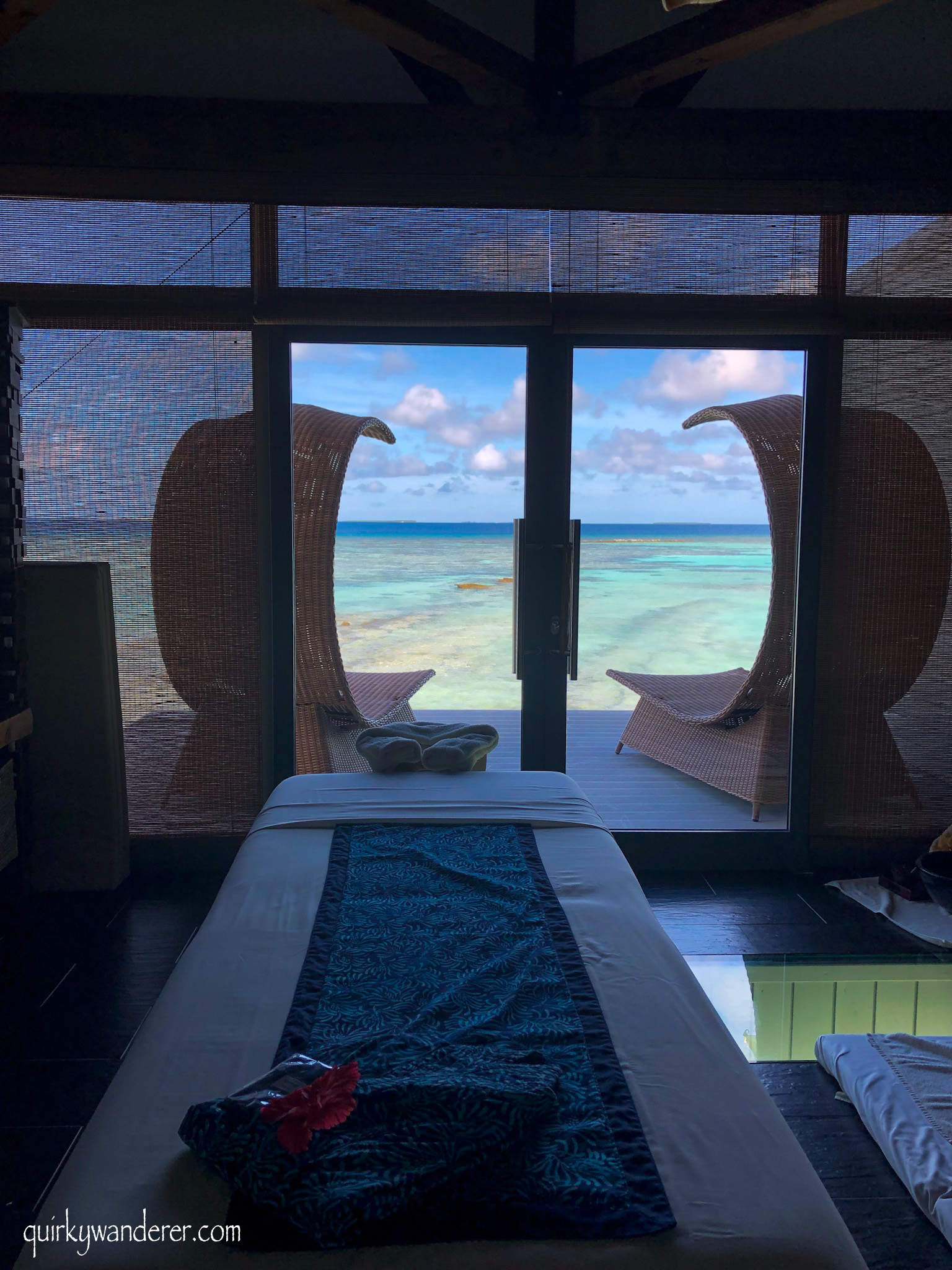 The most unique aspect of my water villa, was the proximity to the ocean. My villa faced the lagoon and I was just one ladder away from plunging into the teal coloured waters. Even if I didn’t physically enter the lagoon, I could perch myself in the hallway near the glass floor and watch the underfoot marine life, still keeping my interaction with the ocean intact.
