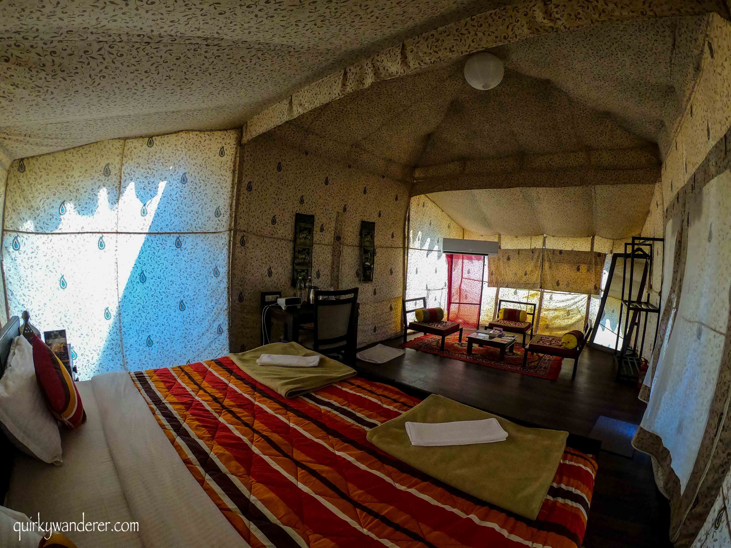 The tent city is a perfect blend of luxury with rustic touches, making it ideal for families, couples and luxury travellers. Enter a giant hall for seamless check in (with meal coupons for Breakfast, Lunch, Dinner and High tea) and hop into a vibrant rickshaw to your tent cluster. The tent city has something for everybody, albeit it is touristy.