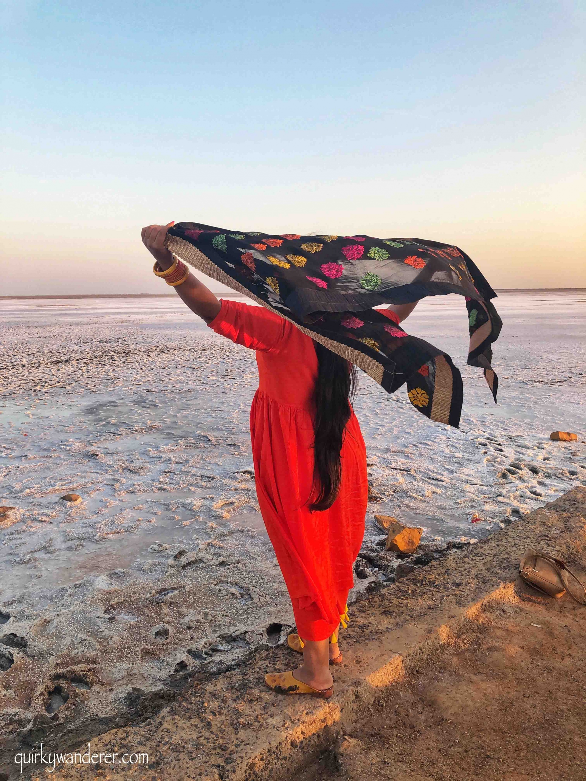 The first time you set foot on the white desert, you cannot believe what you are walking on: SALT! Hardly ten minutes away from the Tent city, crystals of salt are spread over like a massive blanket, spreading infinitely as far as your eyes can see. The White Rann extends from Gujarat’s Kutch district to Pakistan’s Sindh region, spreading over 30,000 sq. km. You will find it immensely crowded and not without a reason. Everyone wants to witness that EPIC sunset over the White Rann. I walk over the marshy salt flat, away from the crowds: the college goers, families, pre-wedding shoots, to find a small piece of this hypnotic expanse to myself. It is enormous and it isn’t hard to find a place where I can bid adieu to the sun for the day, in solitude.