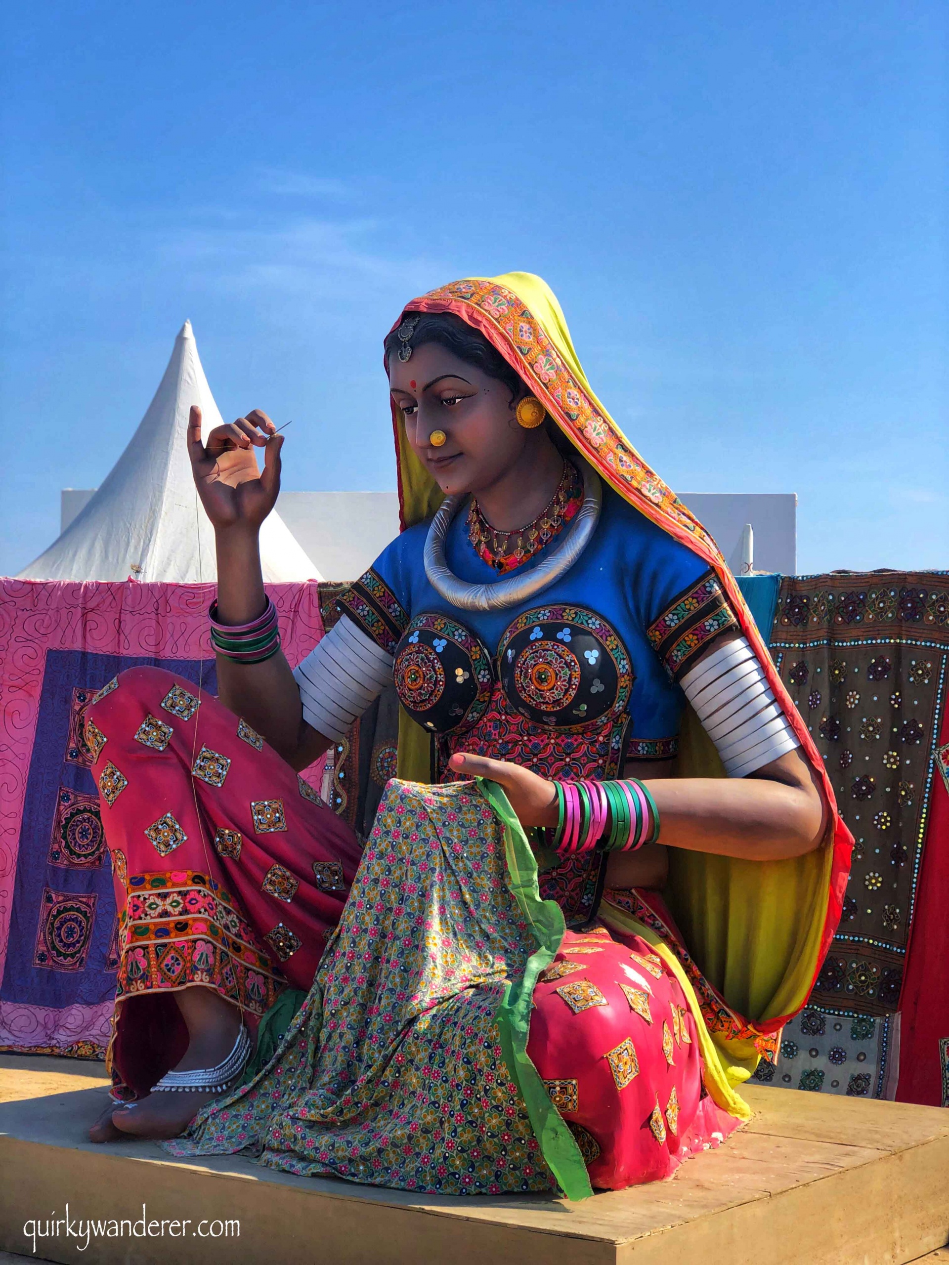 Folk tunes welcome you: be it dhol beats or the lilting tunes of Amrit Lal Barot’s musical instruments and as you manoeuvre your way inside the ’Tent City’, you will find arty installations, quirky props, rustic ‘Bhungas’ (huts), vibrantly decorated modes of transport making the place extremely ‘Insta-worthy!’
