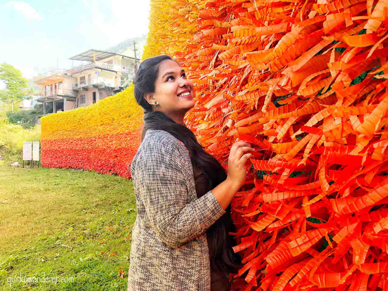 I stand in front of the massive 150 feet wide, 12 feet wide, vibrant Wall of Hope in the village Bungalow ki Kandi, near Mussoorie. The citizens of Mussoorie with the help of Mr. Kerkar from the Museum of Goa build this colorful wall with over 1500 discarded plastic bottles. One of the biggest behavioural changes brought by the Hilldaari movement is the way people perceive waste.