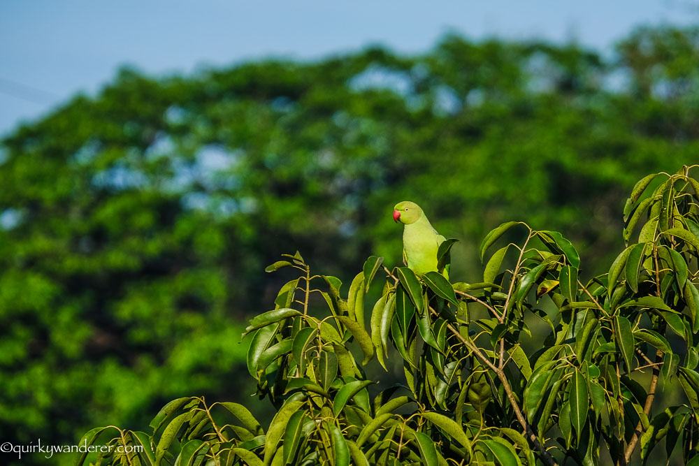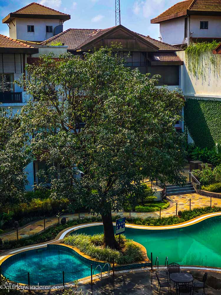 I walked past the quiet corridors of the hotel and reached the area near the pool. I craned my neck to spot birdies in this thick cluster of trees as old as 80 years!